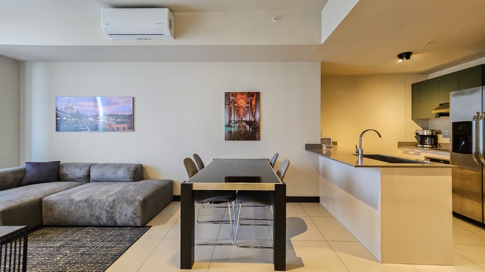 Secure building with access control, well-maintained common areas, and security. A quiet, residential environment, yet connected to urban life.