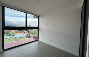El apartamento tiene 2 habitaciones con vista al norte y con ventanales de piso a techo, cocina con desayunador en concepto abierto en conexión con la sala y balcón con vista a las montañas, área de lavandería interna y baño completo con mampara y espejo con luces decorativas.