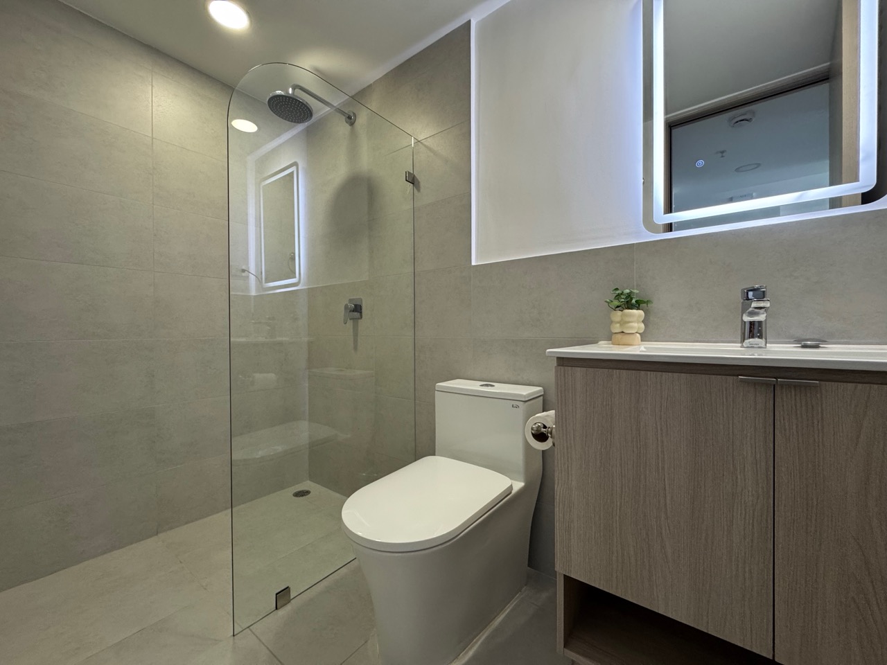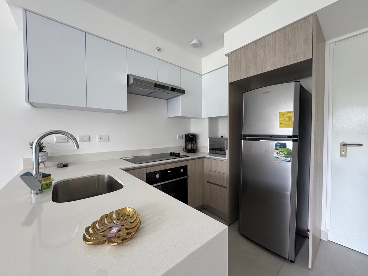 Detalles de acabados: Pisos en porcelanato de alta calidad, ventanales que favorecen la iluminación natural y una estética minimalista al ser una unidad para estrenar.