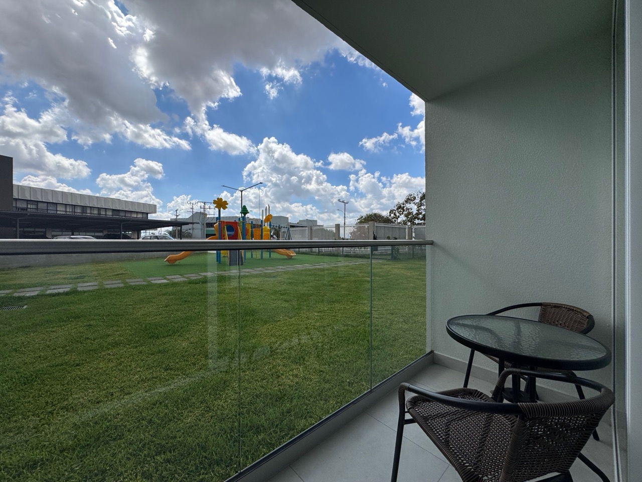 Distribución: 1 dormitorio, 1 baño y 1 parqueo. Ubicado en el primer nivel, cuenta con un balcón privado con vista directa al jardín central, área social con sofá cama para visitas, estación de trabajo dedicada y cuarto de lavado interno con pila.