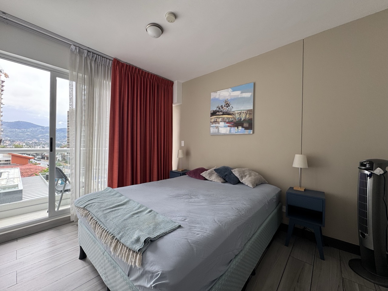 Distribucion: 1 dormitorio, 1 baño, 1 parqueo y 1 bodega. Cocina con desayunador, sala y área de lavandería con pila y calentador de agua. Tiene balcón privado con vistas espectaculares a las montañas y el atardecer, baño y walk in closet en el dormitorio.