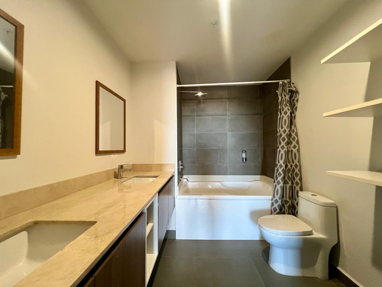 Apartamento en condominio ubicado en Rohrmoser. Proyecto rodeado de áreas verdes, piscina temperada, gimnasio, lounge, lobby y parqueos de visita, entre otros. Además cuenta con paneles solares para disminuir el consumo eléctrico. Amplio y cómodo apartamento con vista al bosque y rio. Cuenta con 2 habitaciones (principal con walk in closet y baño), 2 baños, 2 […]