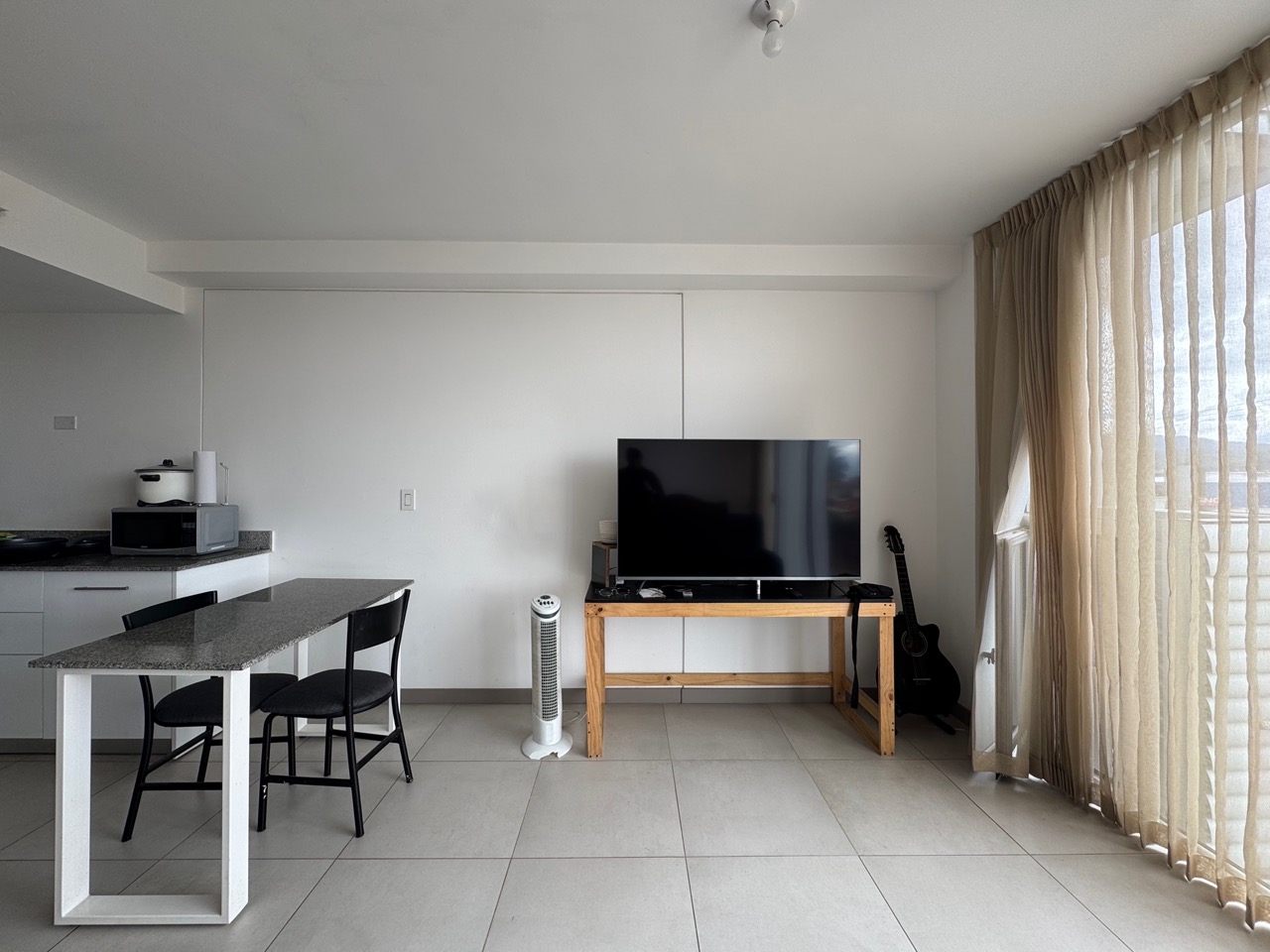 Acabados semi-industriales y modernos, buena iluminación y ventilación natural, sobres en cuarzo y pisos en porcelanato.